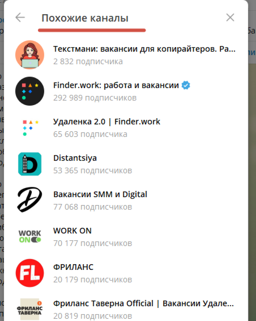 Готово! Телеграм подобрал похожие по теме каналы