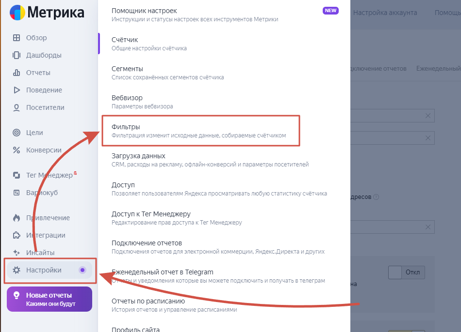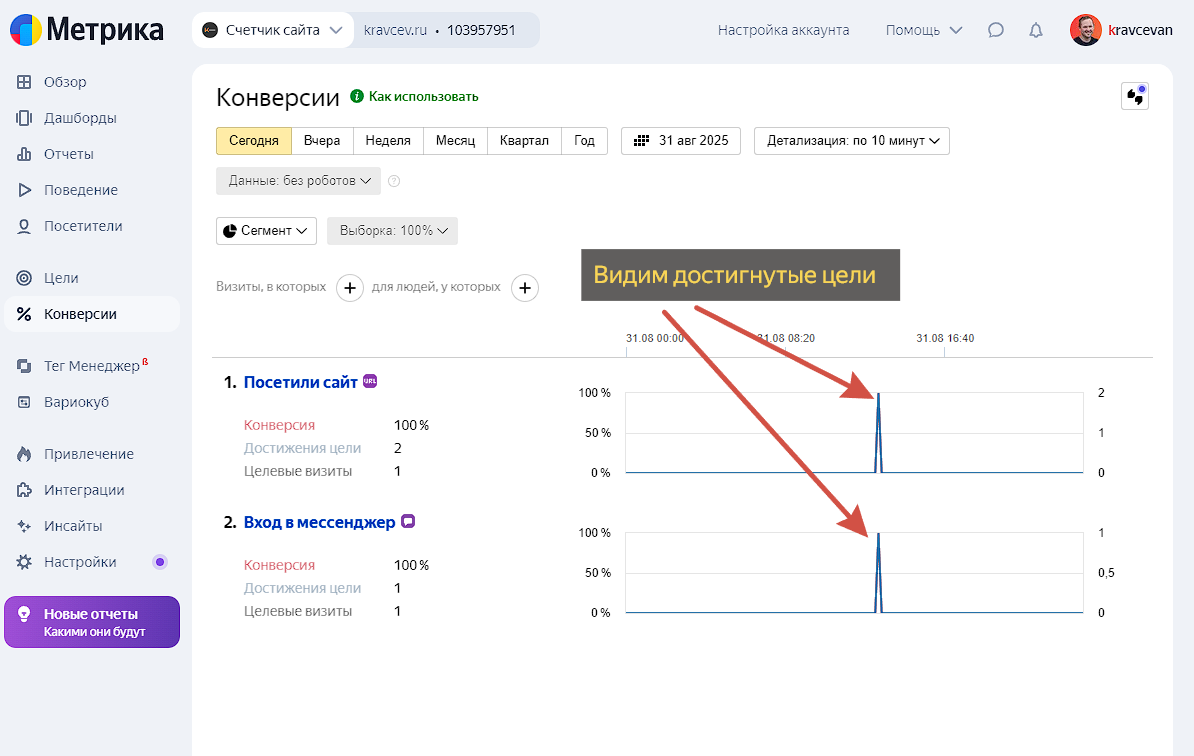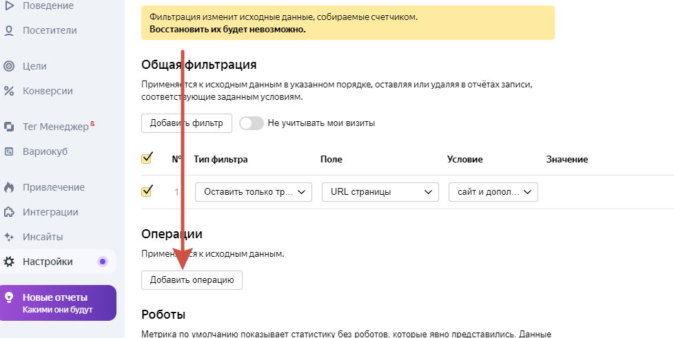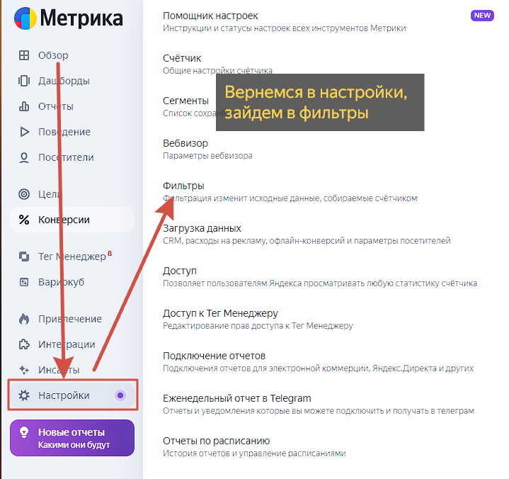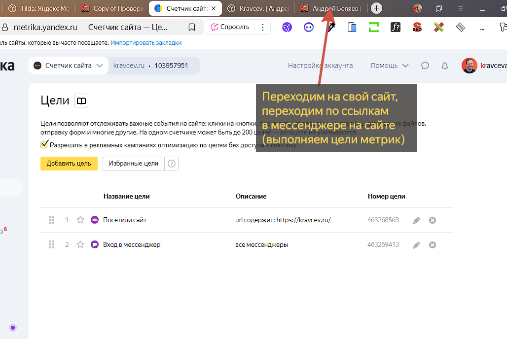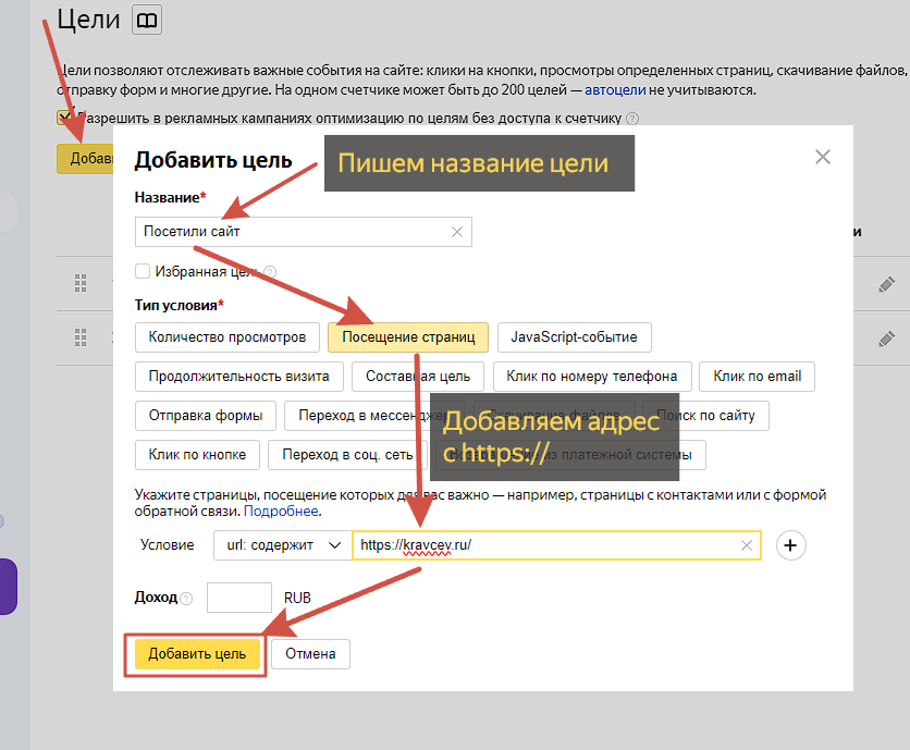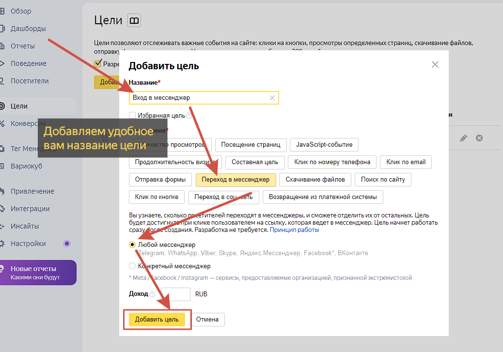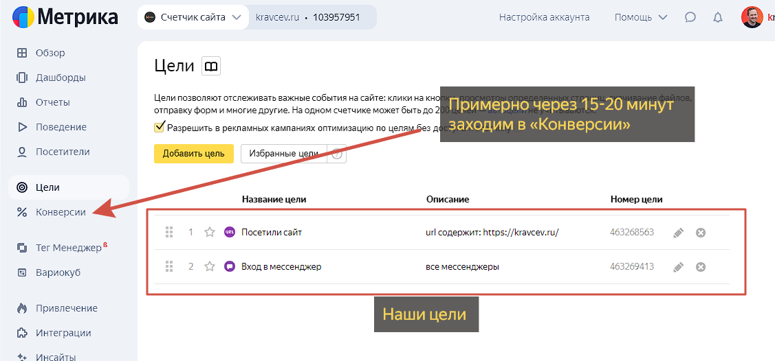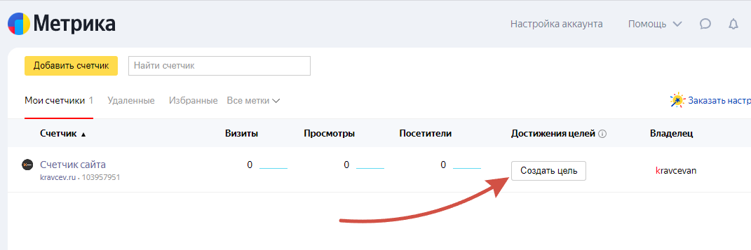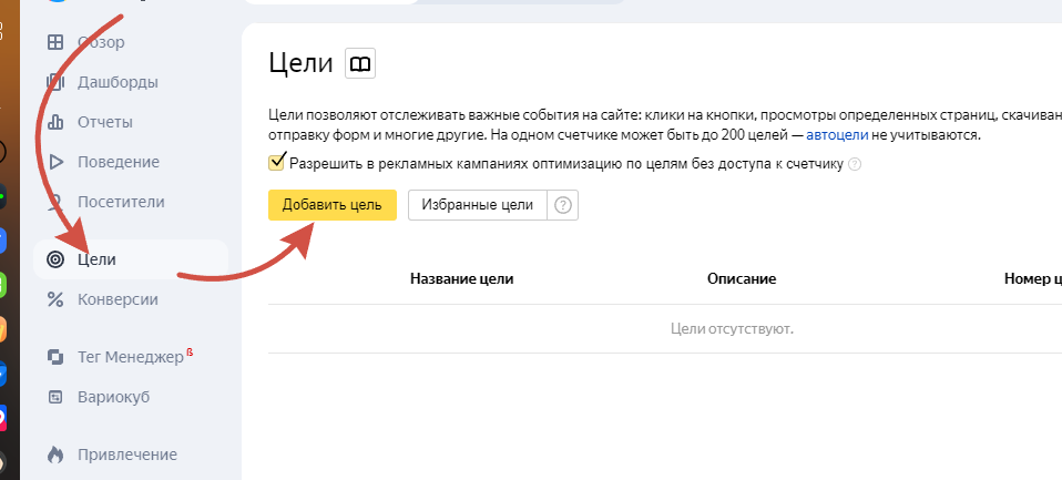 Вернемся в Яндекс Метрики и настроим цели