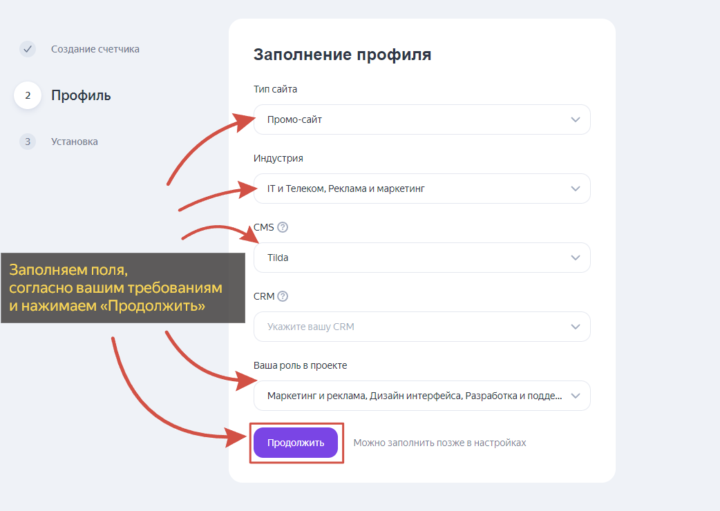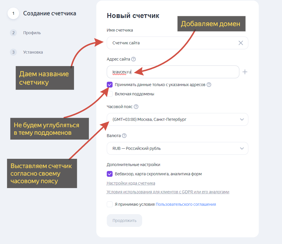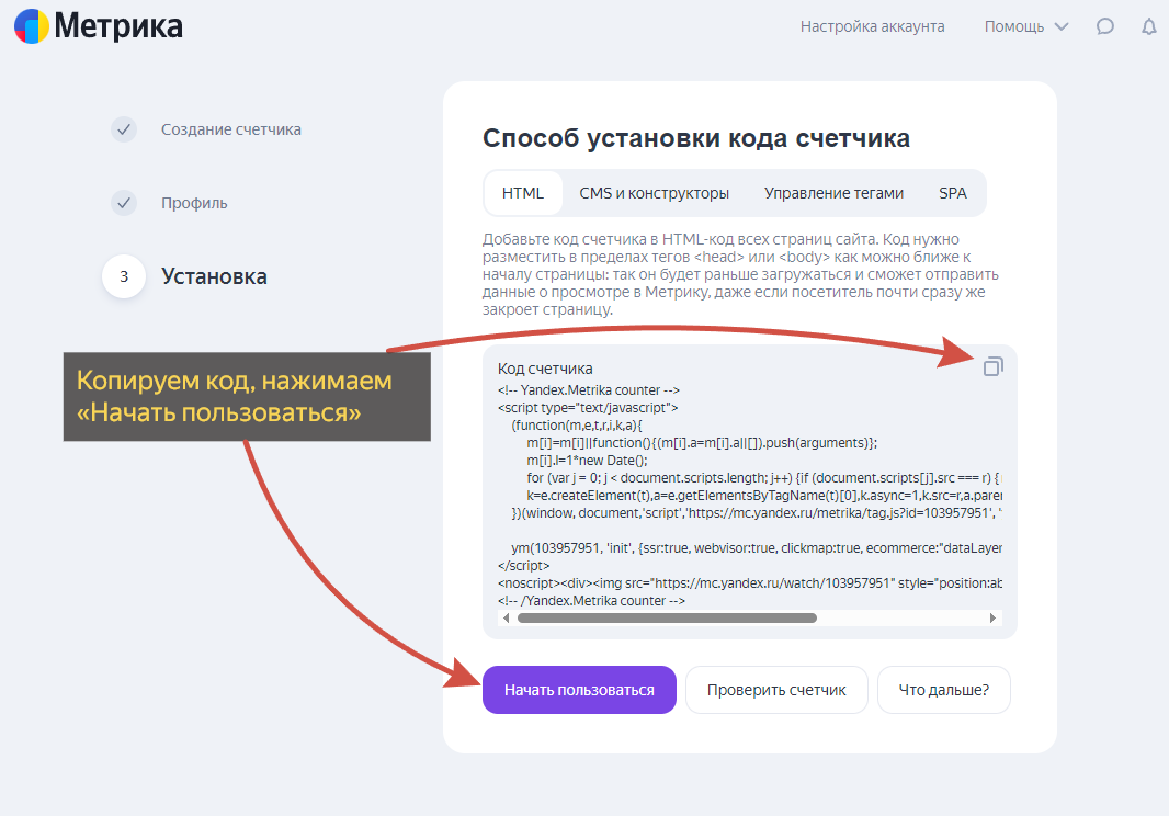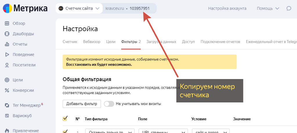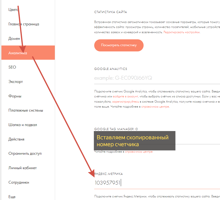 Создание своего счетчика Яндекс Метрики и установка на сайт на «Тильде»