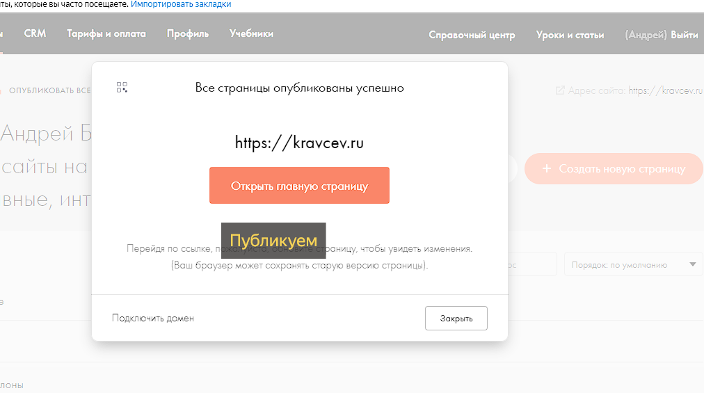 Заходим на свой сайт в Тильде